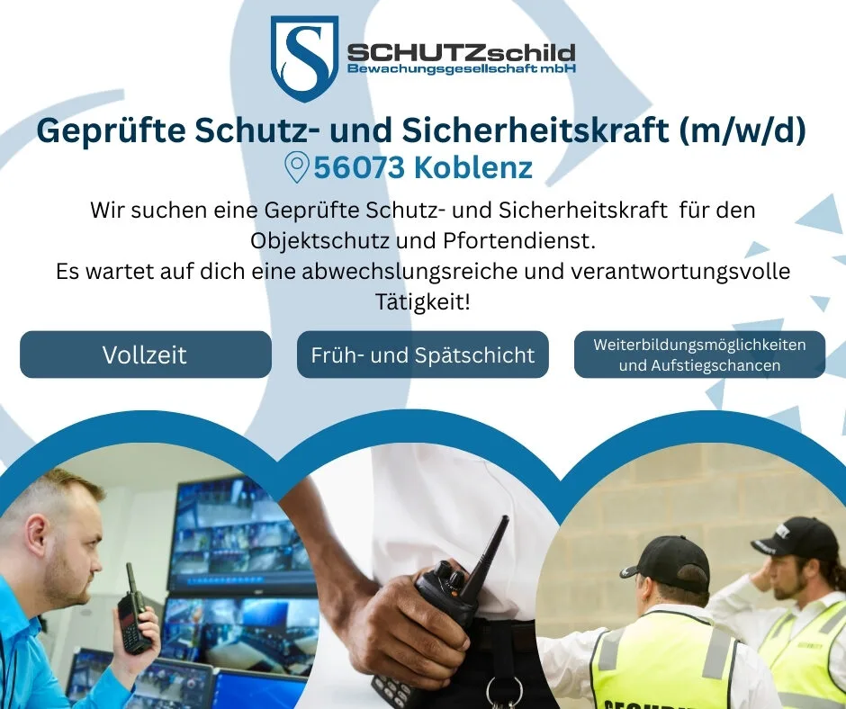 Geprüfte Schutz- und Sicherheitskraft, Objektschutz, Pfortendienst, Sicherheitsdienst, Vollzeit, Koblenz, Zugangskontrolle, Wachschutz, Sicherheitsfachkraft, Werkschutz