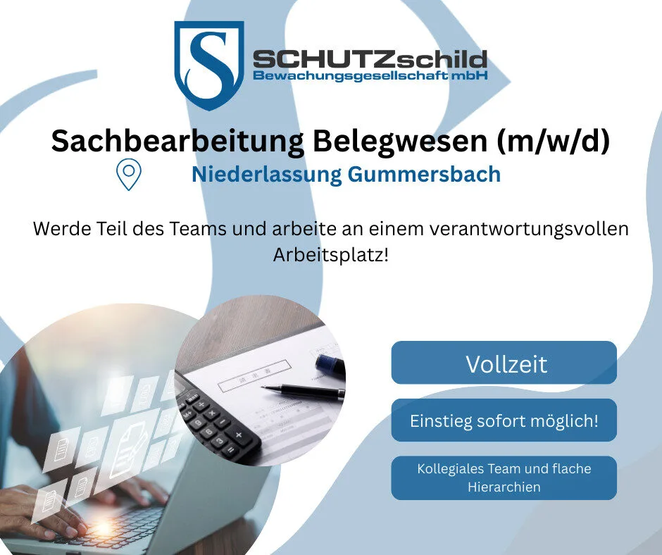 Zur Verstärkung unseres Teams suchen wir ab sofort eine engagierte Persönlichkeit in der Sachbearbeitung Belegwesen.