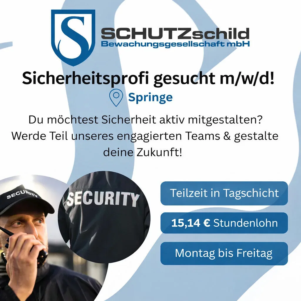 Wir suchen ab sofort motivierte, zuverlässige und engagierte Sicherheitsmitarbeiter (m/w/d) für den Einsatz in einem öffentlichen Gebäude in Springe. Die Tätigkeit ist in Teilzeit oder als Minijob möglich.