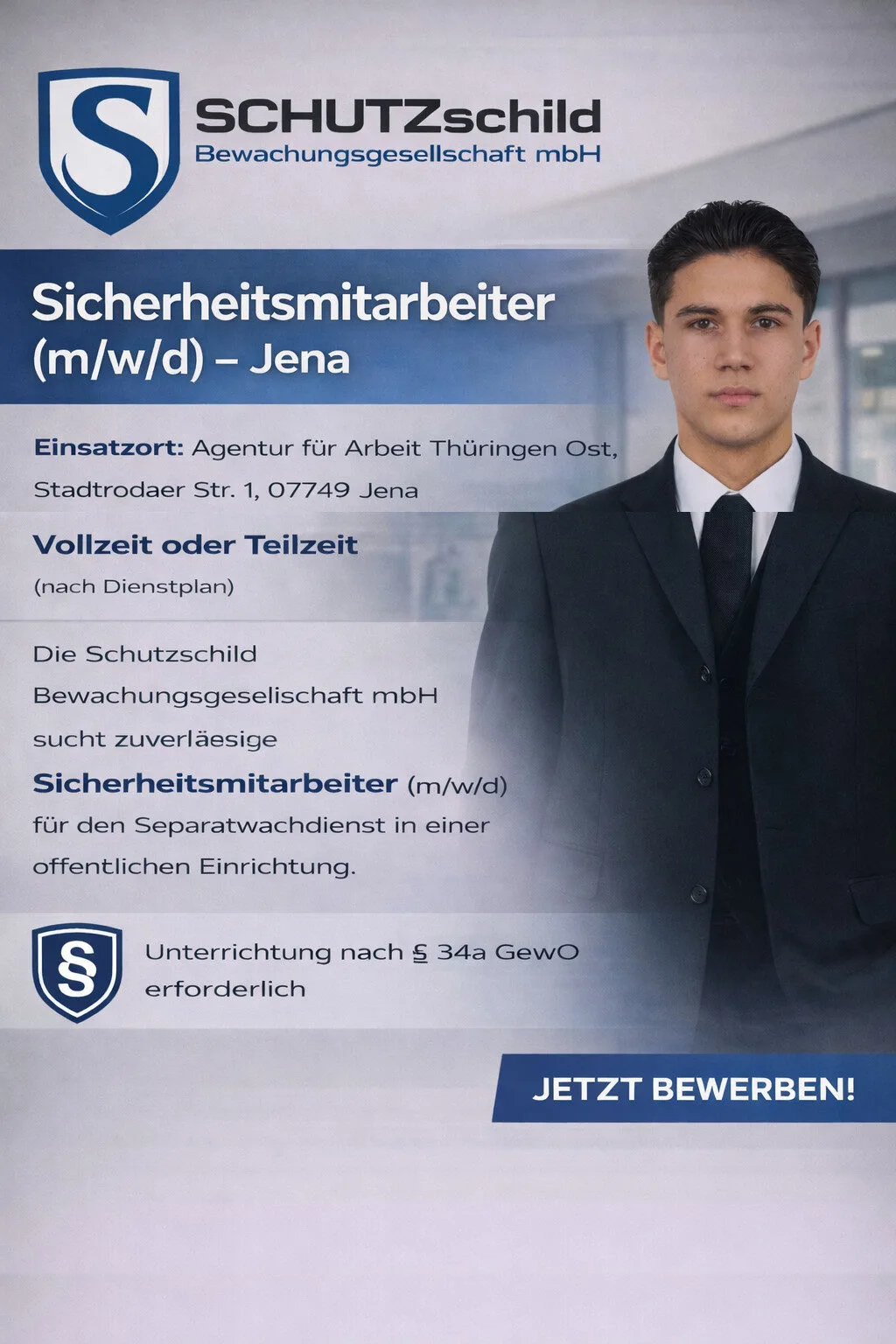 Einsatzort: Agentur für Arbeit Thüringen Ost, Stadtrodaer Str. 1, 07749 Jena